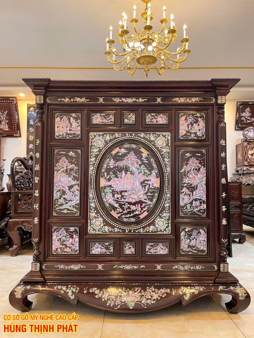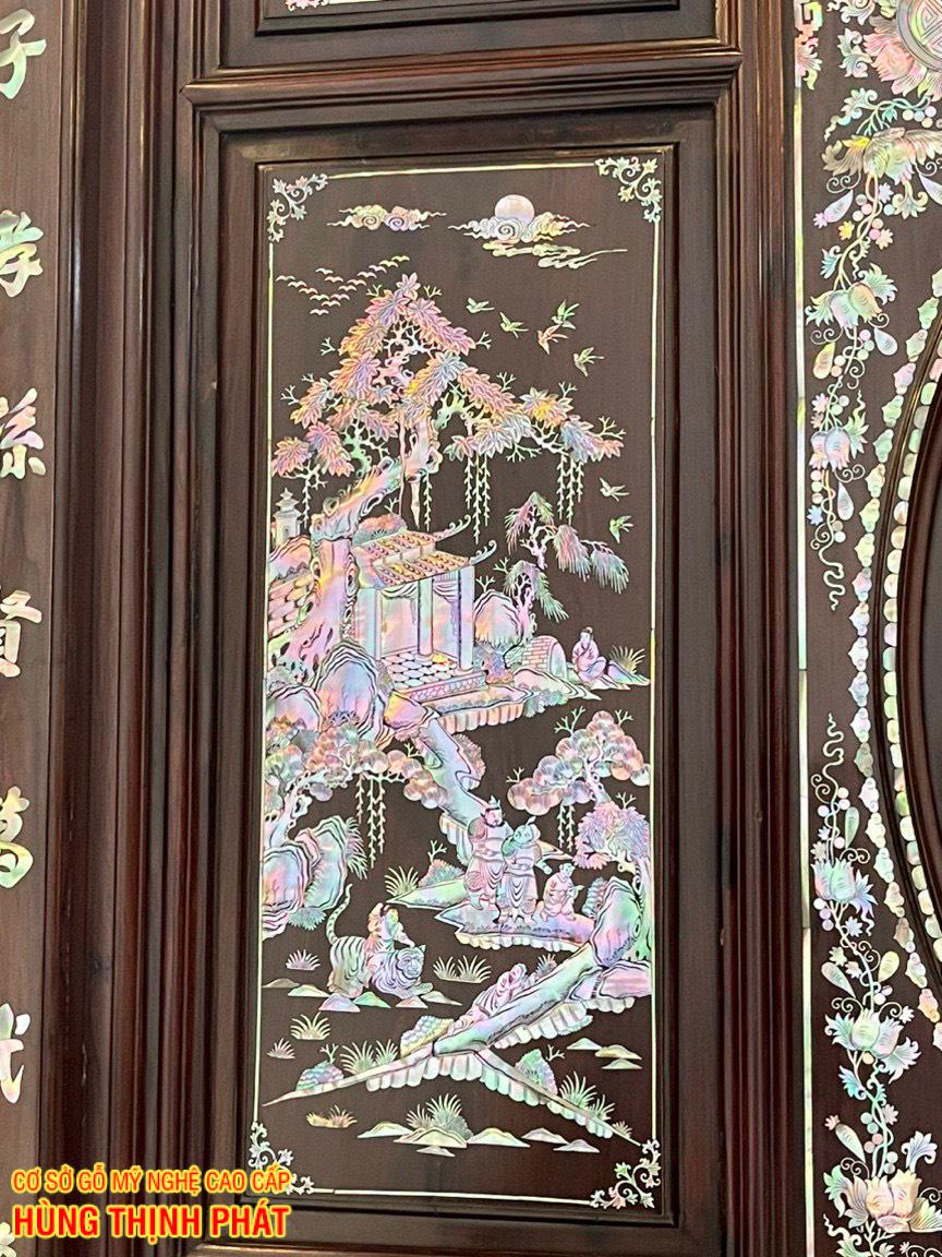 Hình ảnh chi tiết tủ thờ 13 Trám cẩn Ốc Đỏ gỗ Cẩm Lai